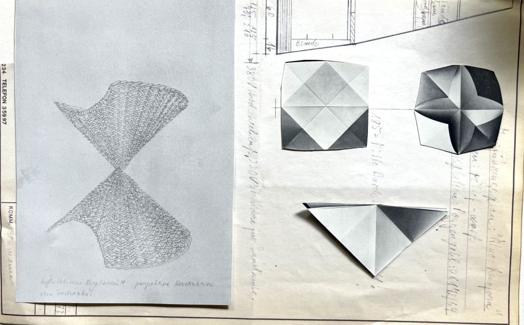While cleaning out my mother in laws house, I found stacks of brittle yellowed paper, old floor plans – and a book on Origami: This is how the series started. According to a japanese legend, anyone who folds a thousand origami cranes will be granted a wish by the gods. Maybe I can reach that with making a thousand Origami Collages …