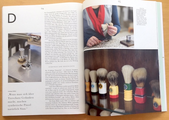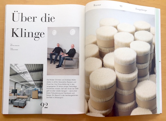 Angegeben wird nicht bei Mühle in Stützengrün, Ortsteil Hundsübel. Dabei hätte man durchaus Grund dazu. Hat sich das Familienunternehmen doch in den letzten Jahrzehnten zu einer weltweit renommierten Marke für Rasurkultur entwickelt. Ob Isetan in Tokio, Liberty in London, Takashimaya in Singapur oder Esbjerg in Wien – wo immer es gehobene Männerpflegeprodukte gibt, findet man die Rasierer und Pinsel von Mühle aus dem Erzgebirge. Überall werden die handwerkliche Perfektion und das gehobene Design made in Germany geschätzt. Das war durchaus nicht immer so in der bewegten Firmengeschichte. Nach der Wende stand das Unternehmen kurz vor dem Aus. „Mein Vater hat ums Überleben gekämpft“, erzählt Andreas Müller, der die Firma heute zusammen mit seinem Bruder Christian in dritter Generation leitet. „ Jeden Tag hat er überlegt, ob er wieder aufsperren soll oder ob er es sein lässt. Über Jahre hinweg. Das war richtig schwierig.“ Und es hat die Kindheit von Christian und Andreas geprägt. „Damals entstand diese enge Bindung an die Firma. Wir haben hier alles gemacht von Hof fegen bis Wände streichen.“ Über Wasser gehalten hat die Familie die Mutter, die Geld mit Werbung verdiente.